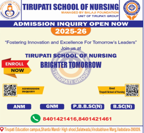 Admissions at Tirupati School of Nursing provide aspiring nurses with the opportunity to embark on a transformative educational journey. We are committed to offering a comprehensive nursing program that blends academic excellence with practical training, ensuring students are fully equipped to meet the demands of the healthcare profession.